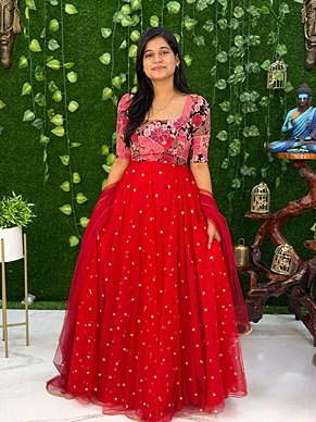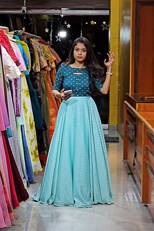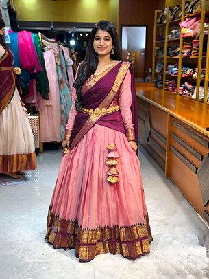 We offer a curated collection of Lehengas, Half Sarees, Sarees, Maxis, and designer festive wear for all occasions.