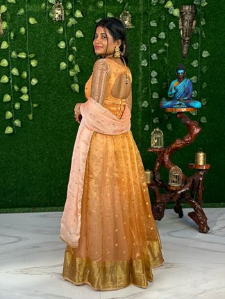 Bridal Pure Tissue Silk – Peach (Lehenga)